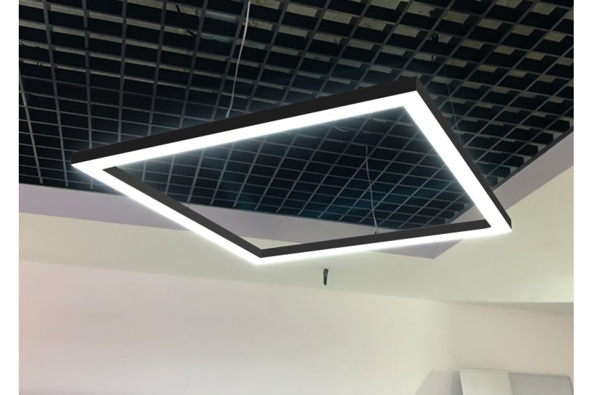 Светильник подвесной светодиодный, потолочный Квадра квадрат 110-240V 420W 6000k 4000*4000, IP20 черный корпус, драйвер снаружи LEDUA