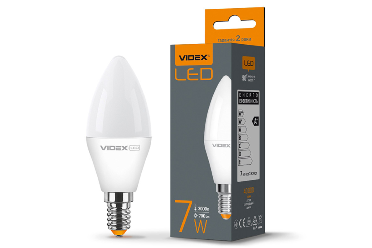 Светодиодная лампа VIDEX C37e 7W E14 3000K 220V (VL-C37e-07143)