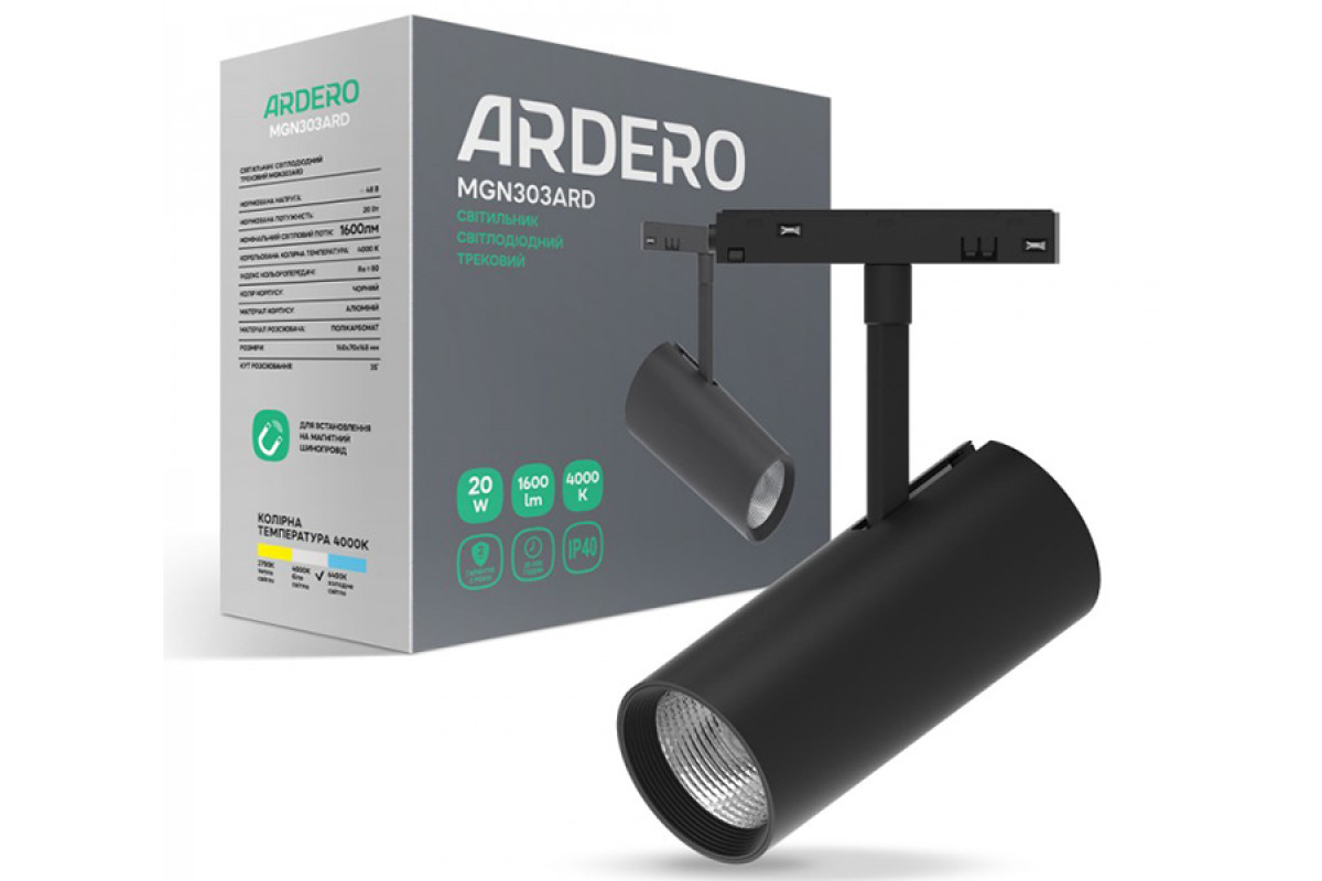 ❓ Кто производитель Светодиодный магнитный трековый светильник 20Вт 4000K 35° черный MGN303ARD Ardero?