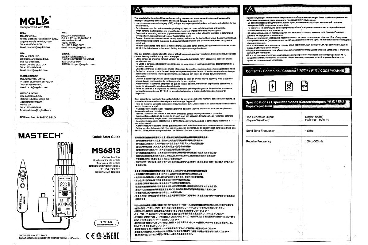 ❓ Кто производитель Тестер кабеля Mastech MS6813 (12-1627)?
