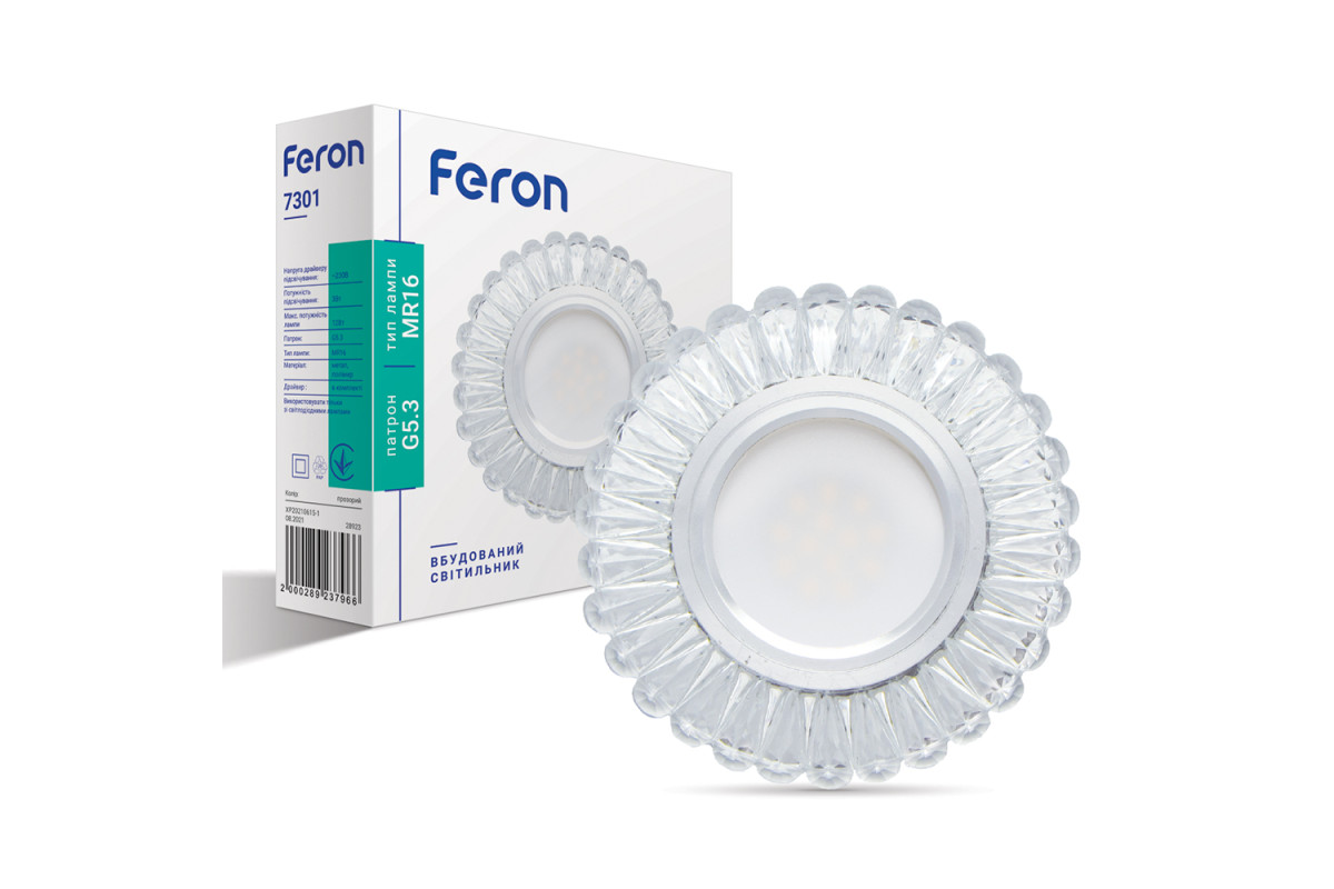 ❓ Какова цена на Встраиваемый светильник Feron 7301 под лампу с подсветкой прозрачный в 2026 году?