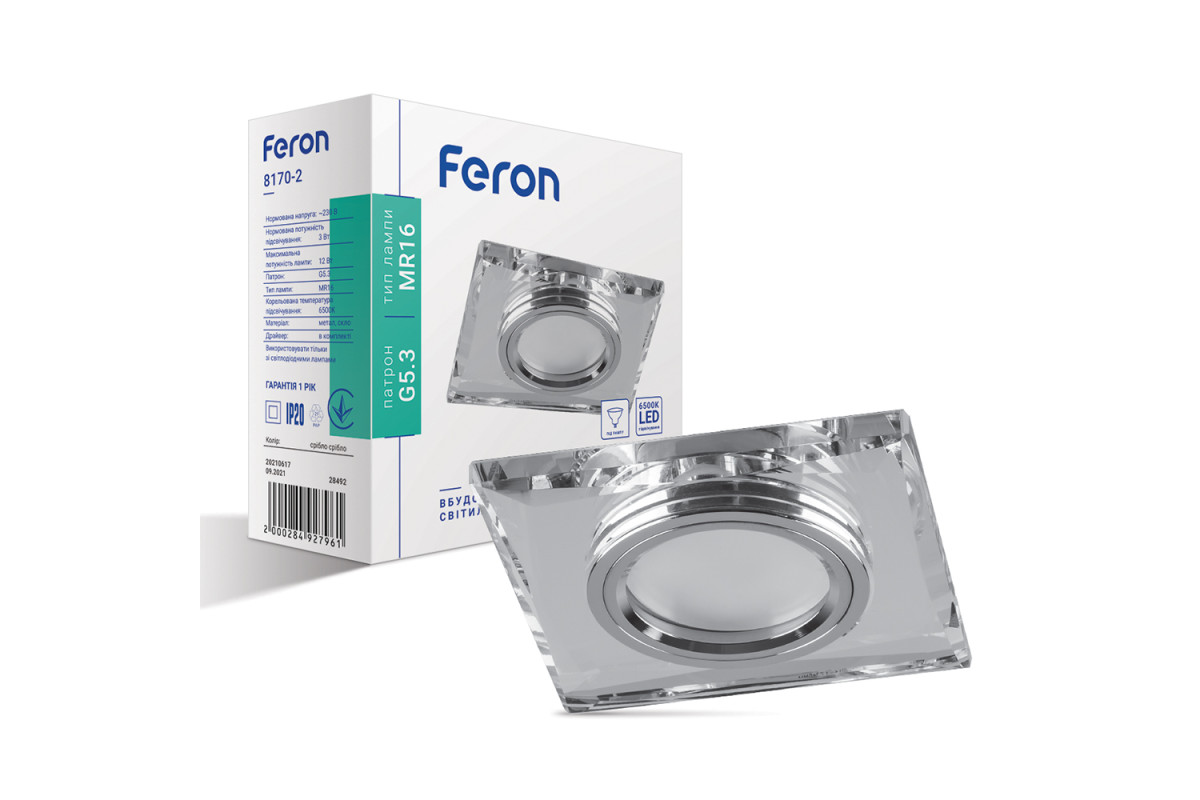 ❓ Кто производитель Встраиваемый светильник Feron 8170-2 под лампу с подсветкой серебро?