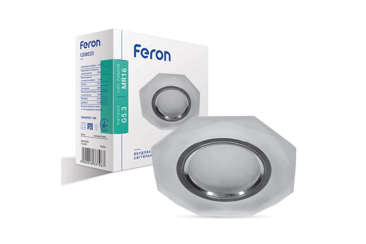 ❓ Кто производитель Встраиваемый светильник Feron CD8020 под лампу с подсветкой хром.?