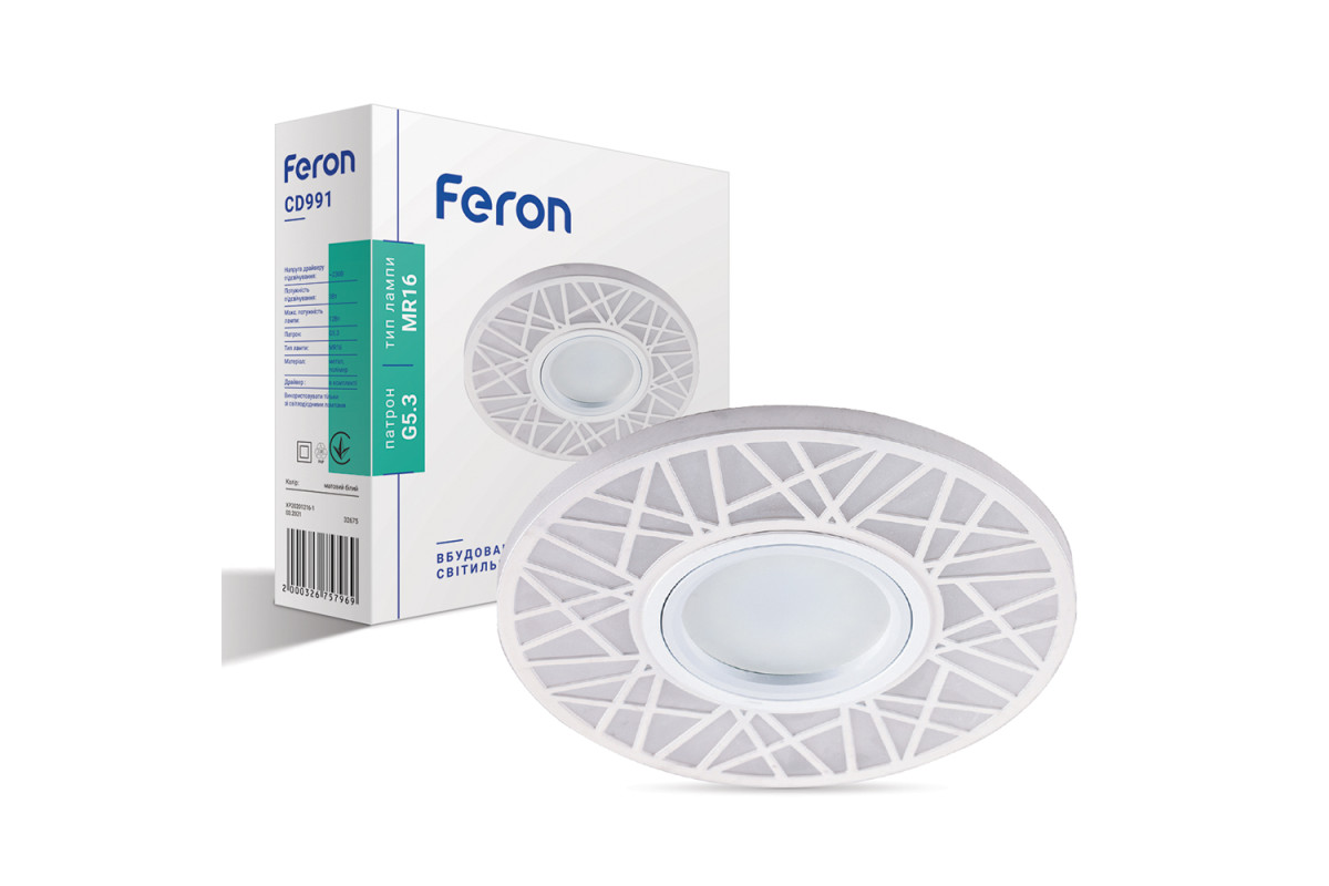 ❓ Кто производитель Встраиваемый светильник Feron CD991 под лампу с подсветкой белый.?