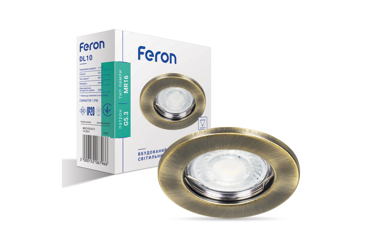❓ Кто производитель Встраиваемый светильник Feron DL10 под лампу античное золото?