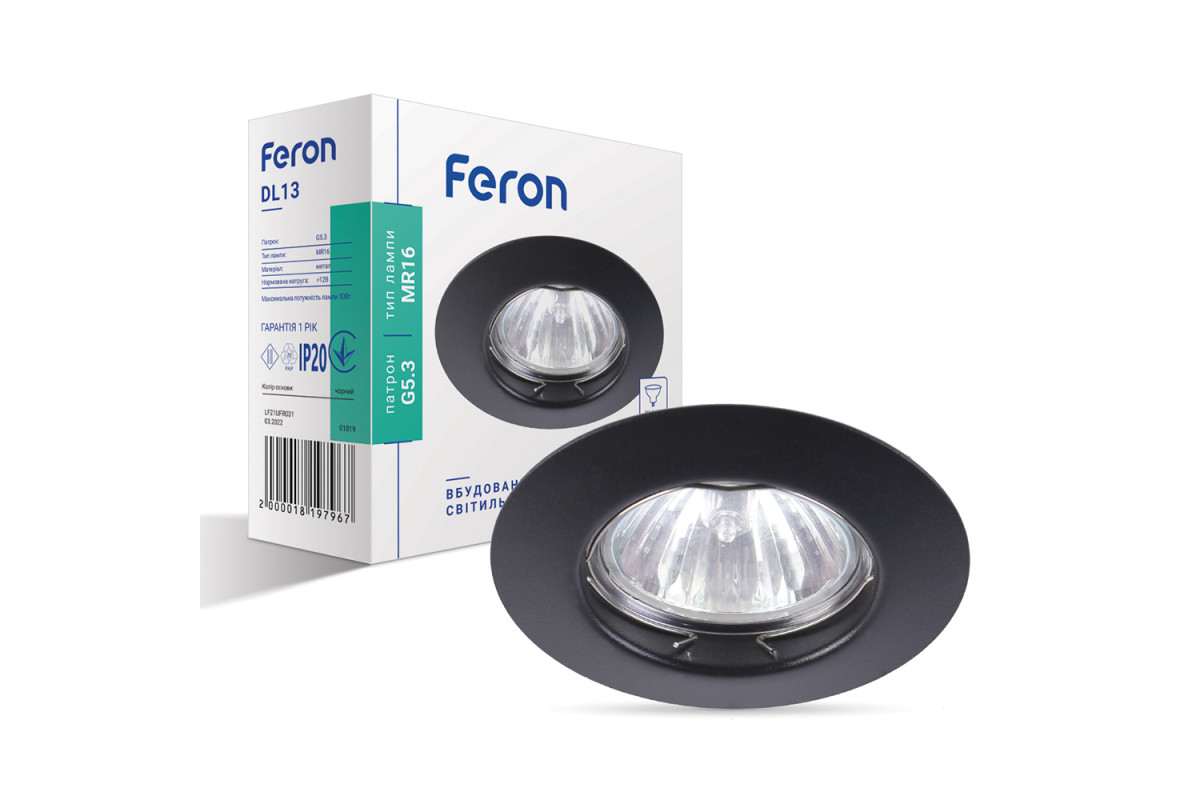 ❓ Как заказать Встраиваемый светильник Feron DL13 под лампу черный с доставкой?