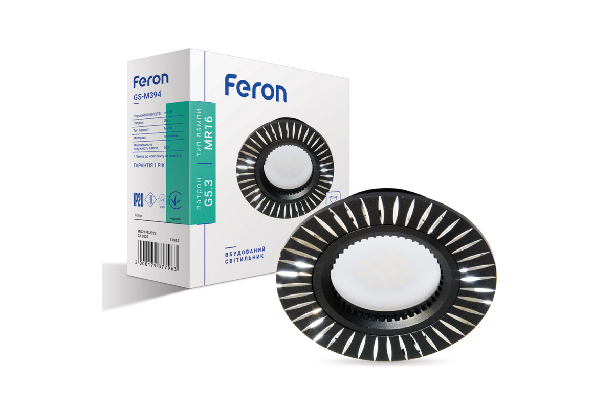 ❓ Как заказать Встраиваемый светильник Feron GS-M394 под лампу черный с доставкой?