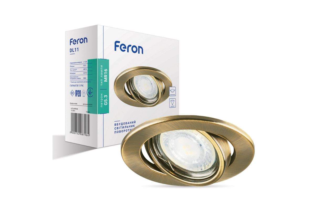 ❓ Кто производитель Встроенный светильник Feron DL11 под лампу античное золото?
