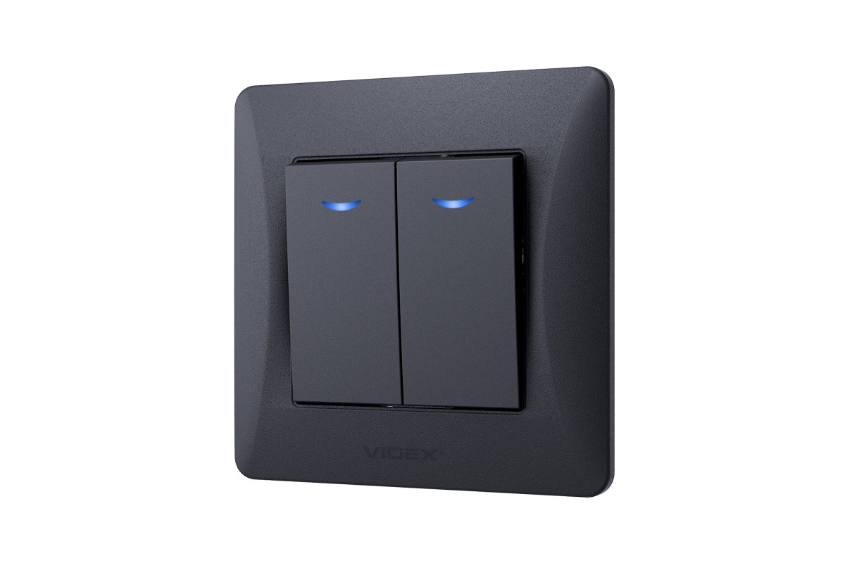 Выключатель двухклавишный с подсветкой черный графит VIDEX BINERA