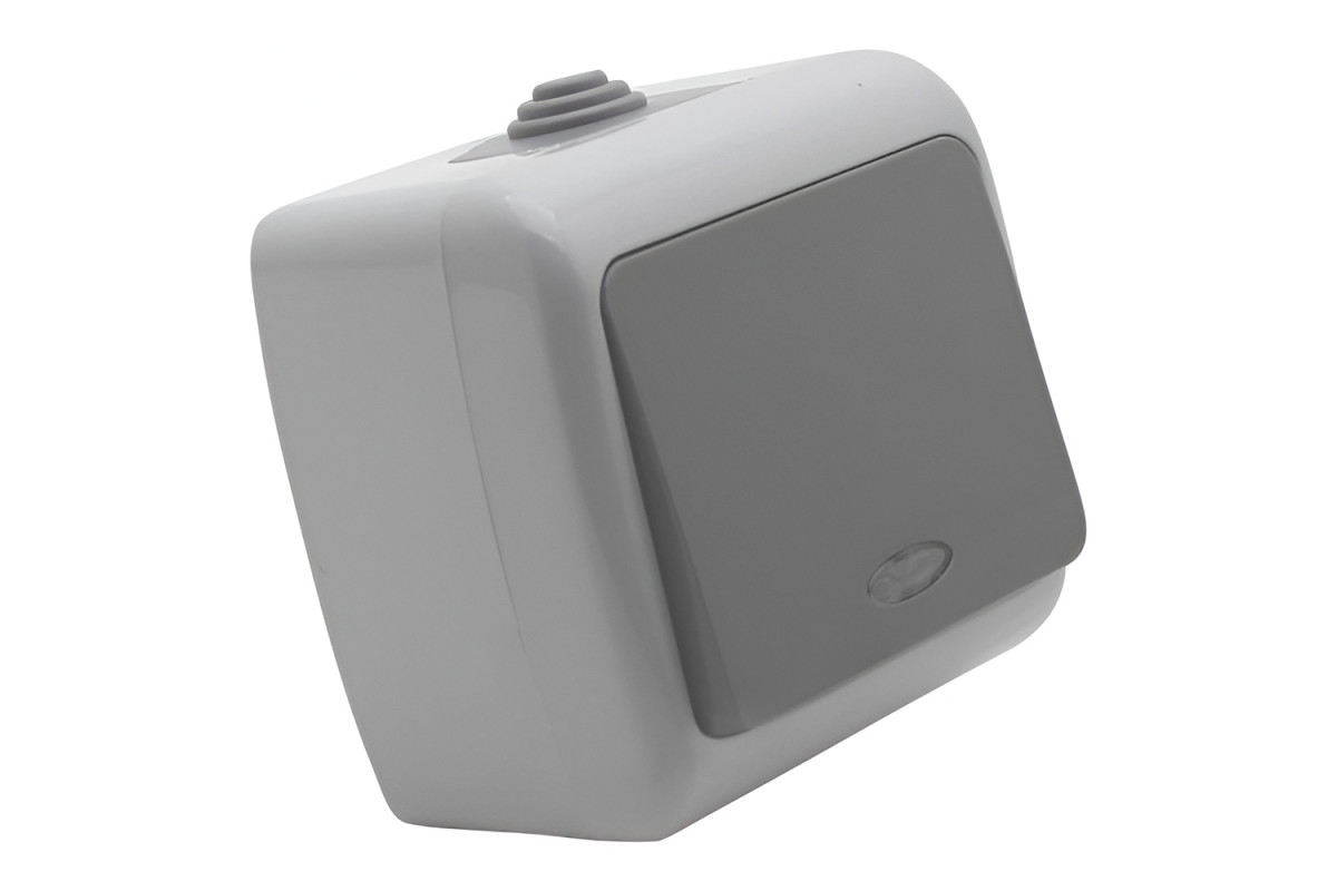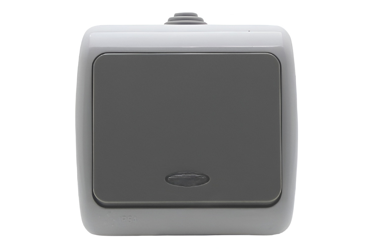 Выключатель накладной 1-й + подсветка IP54 LEMANSO Немо серый LMR2403