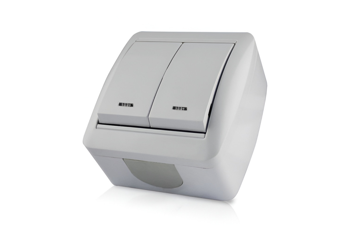Выключатель накладной 2-й + LED подсветка LEMANSO Магнолия белый LMR2010