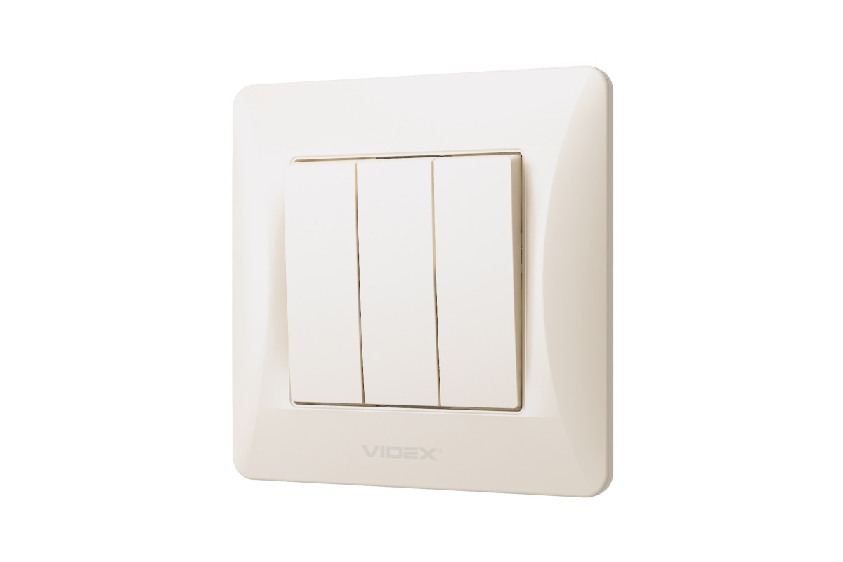Выключатель трехклавишный кремовый VIDEX BINERA