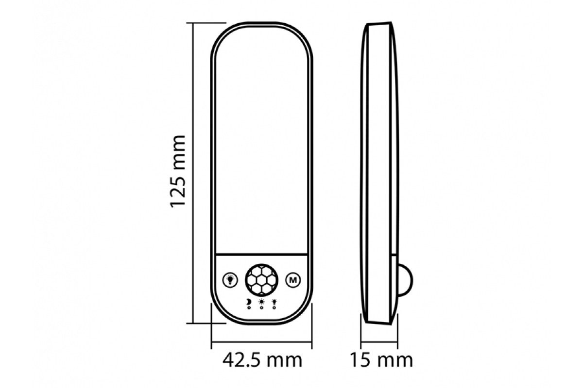 3 режими роботи: датчик уночі, датчик удень, постійне світло. Регулювання яскравості та колірної температури