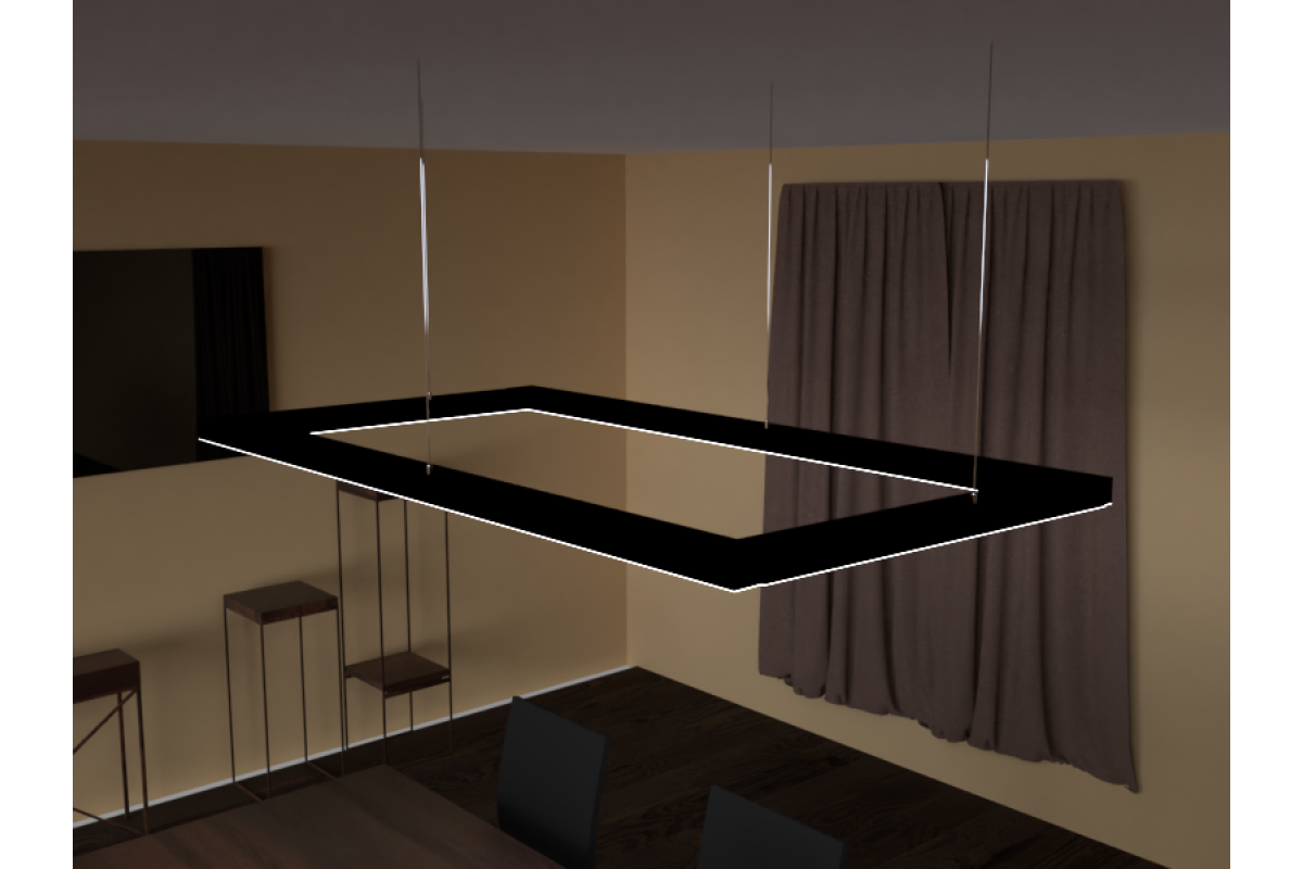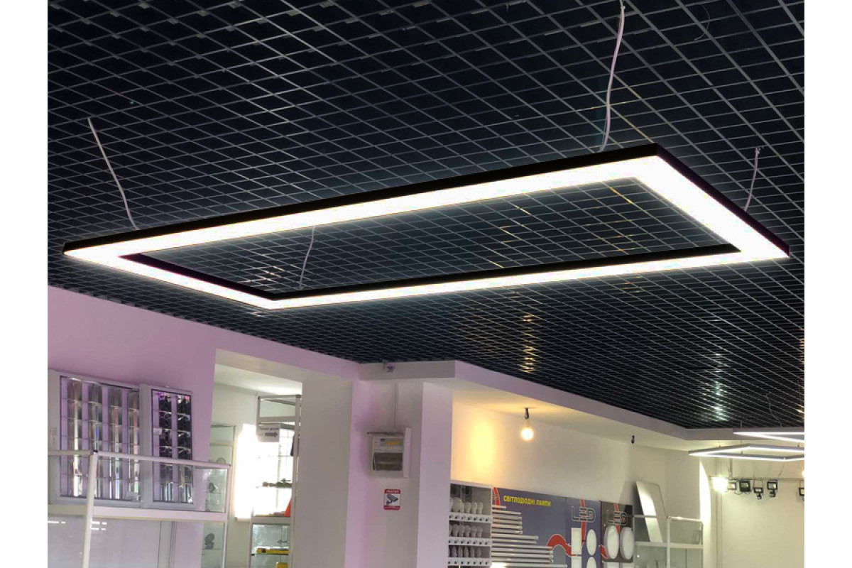 Світильник світлодіодний підвісний, стельовий "Тетрагон" прямокутник 220V 432W 4500k 2000*1000 чорний LEDUA