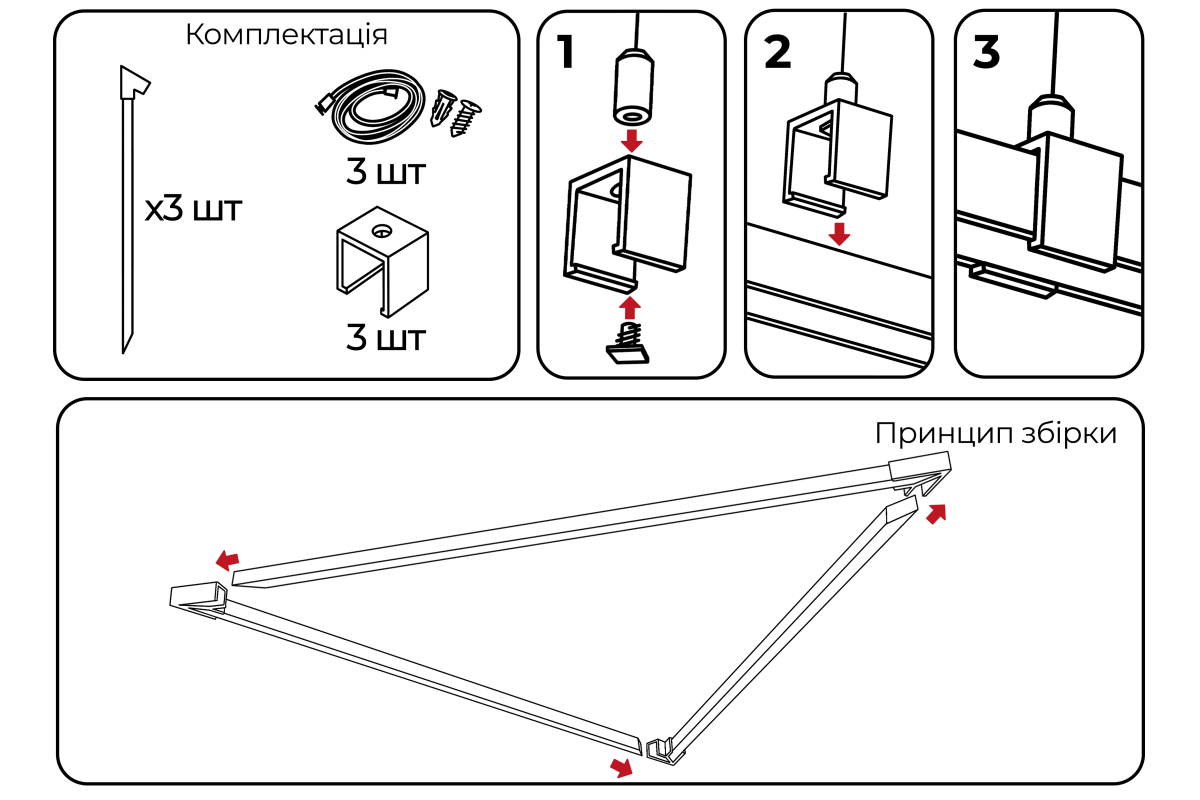 ❓ Як замовити Світильник розбірний світлодіодний підвісний, стельовий "Дельта міні" трикутник 110-240V 24W 3500k1000*1000*1000 жовтий корпус LEDUA з доставкою?