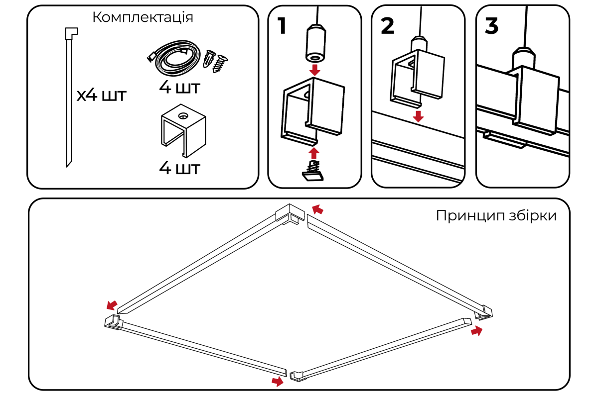 ❓ Як замовити Світильник розбірний світлодіодний підвісний, стельовий "Квадра міні" квадрат 110-240V 32W 4500k 1000*1000 зелений корпус LEDUA з доставкою?