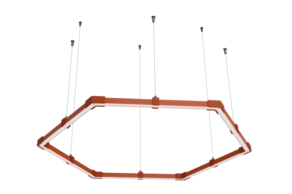 Світильник LEDUA “Шестикутник міні” 24 W 6500 K (помаранчевий корпус) — відмінний вибір для сучасних офісів, студій, виставкових залів або житлових просторів, де світло стає важливим елементом дизайну.