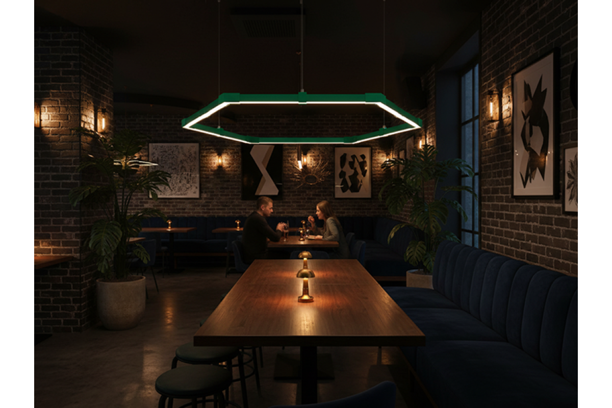 Світильник LEDUA “Шестикутник міні” 48 W 3500 K (зелений корпус) — поєднання енергоефективності, яскравого дизайну та функціональності, ідеально для просторів, де важливий стиль, світло та комфорт.
