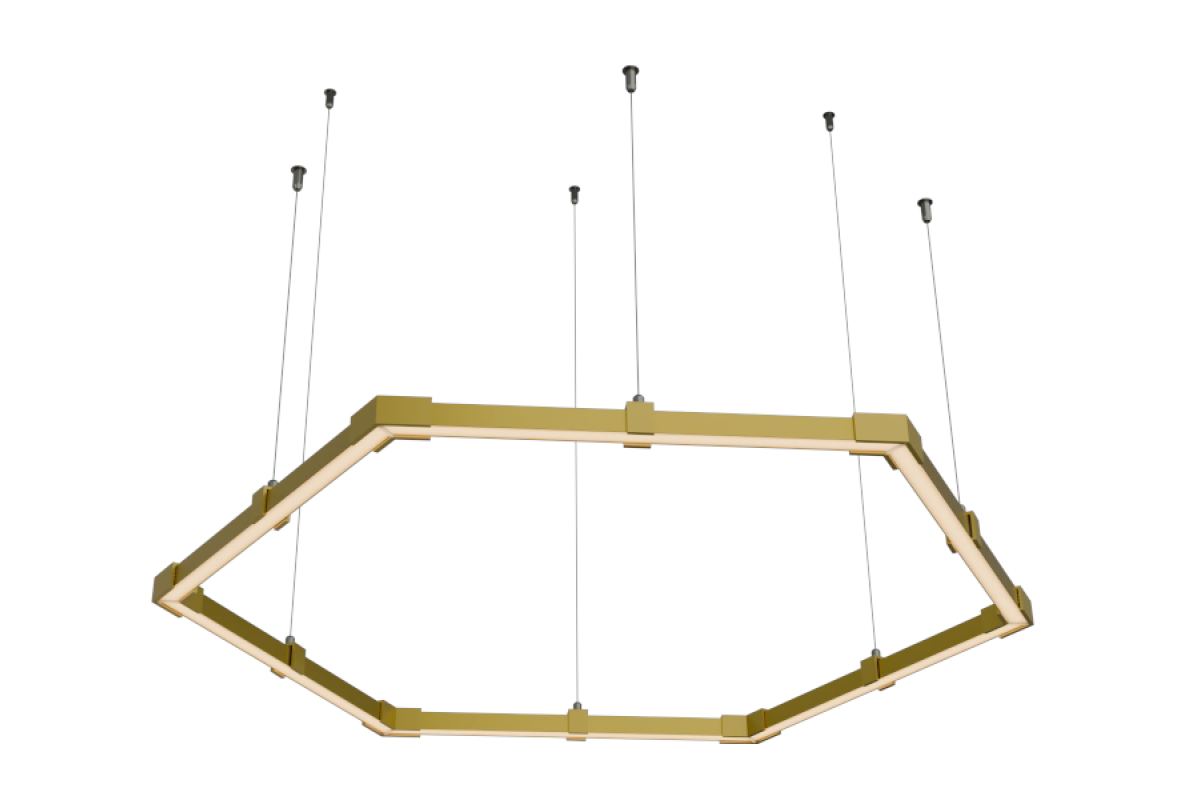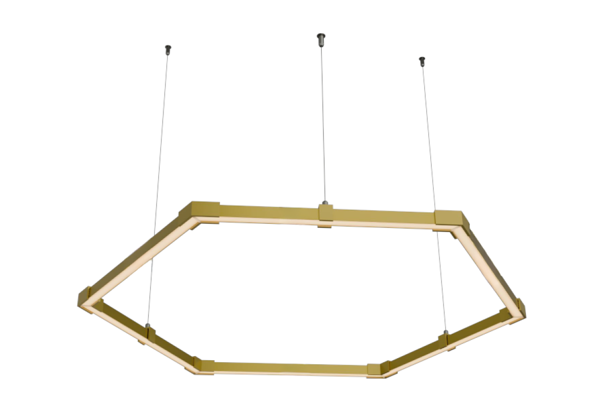 Світильник LEDUA “Шестикутник міні” 48 W 3500 K (золотий корпус) поєднує функціональність і декоративність, створюючи стильне та комфортне освітлення для офісів, галерей, шоурумів чи дизайнерських просторів.