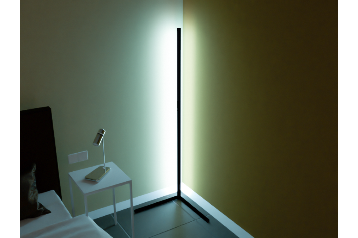 Світильник світлодіодний кутовий підлоговий 220V 12W 1512Lm холодний колір 1400мм чорний корпус LEDUA