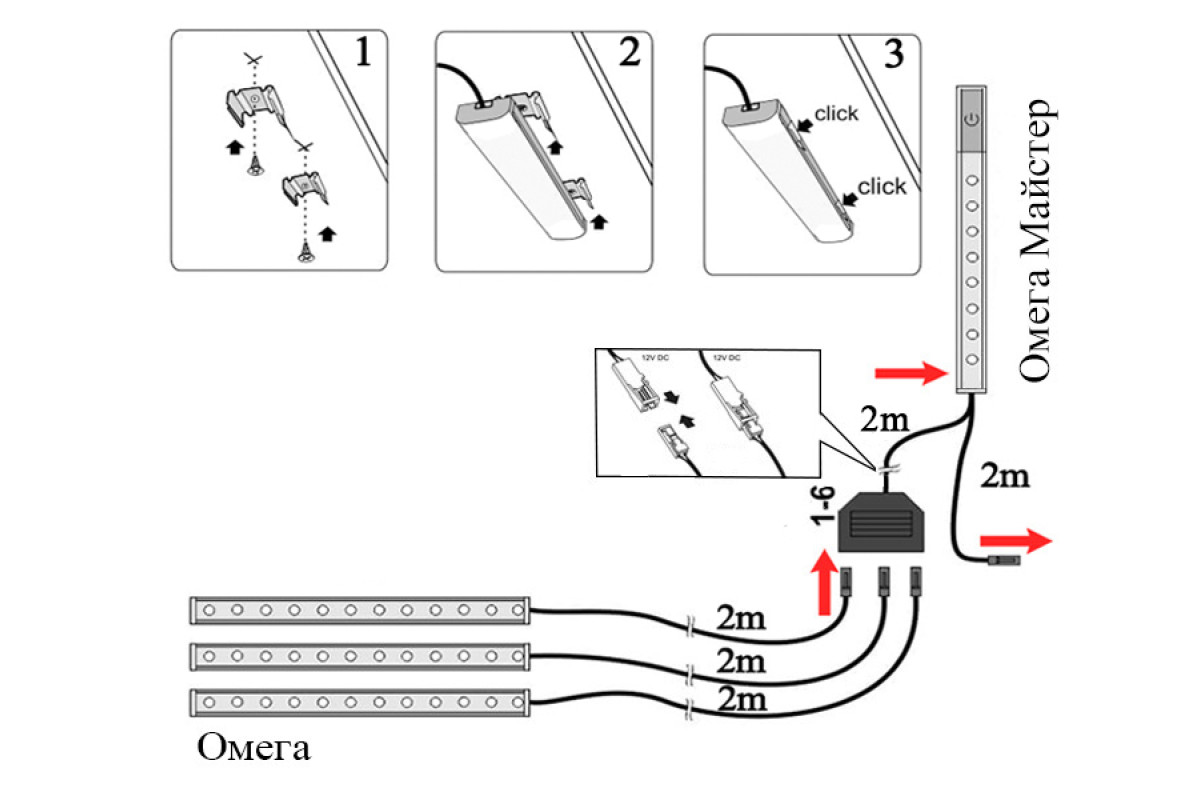 Світильник світлодіодний меблевий накладний Омега 1800мм 12V 6500К (Без вимикача) LEDUA