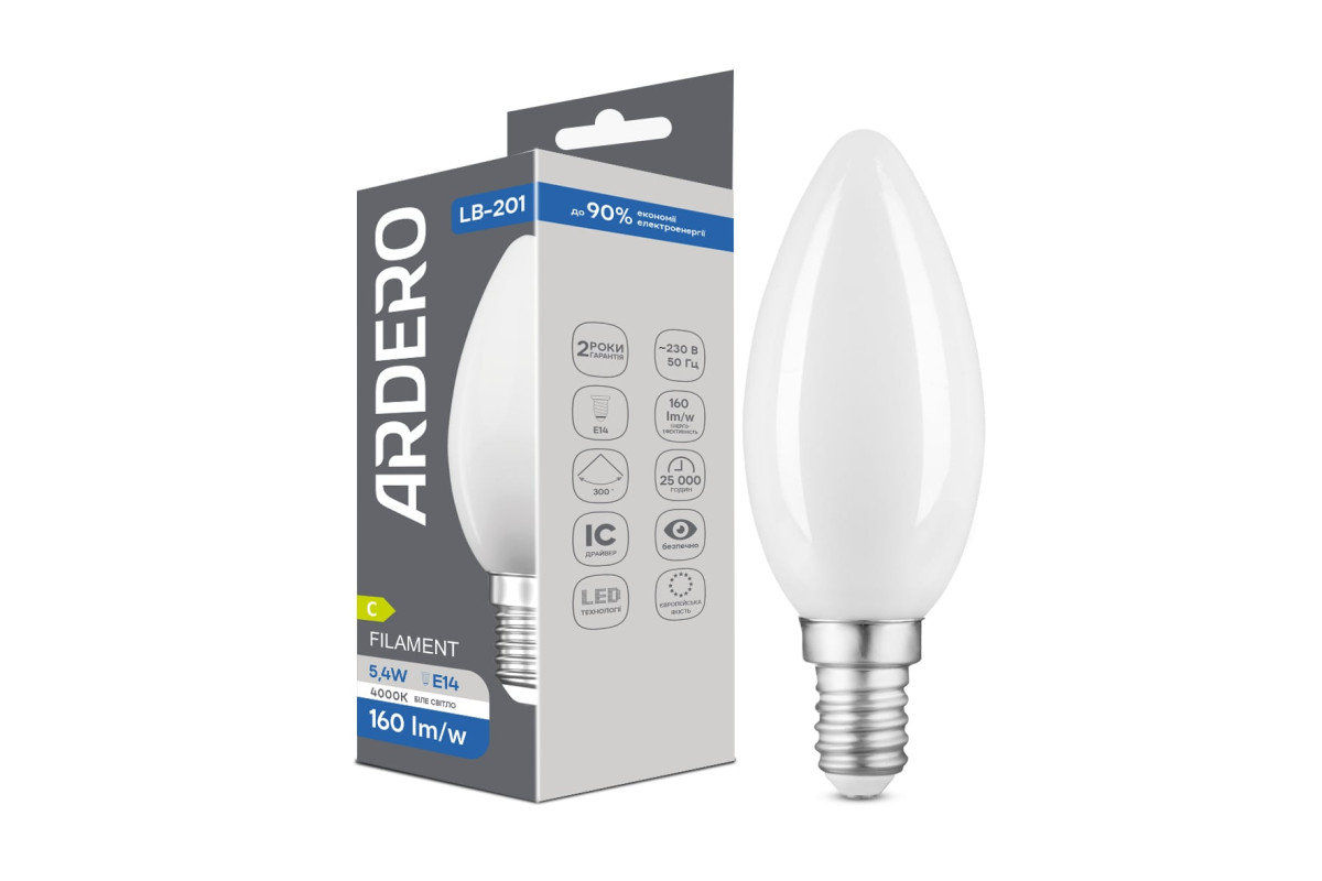 ❓ Як замовити Світлодіодна лампа Ardero LB-201 5,4Вт E14 4000K матована з доставкою?