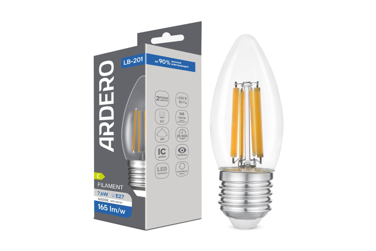 ❓ Хто виробник Світлодіодна лампа Ardero LB-201 7,6Вт E27 4000K?