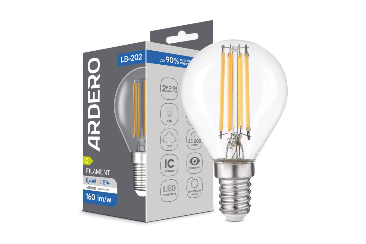 ❓ Хто виробник Світлодіодна лампа Ardero LB-202 5,4Вт E14 4000K?