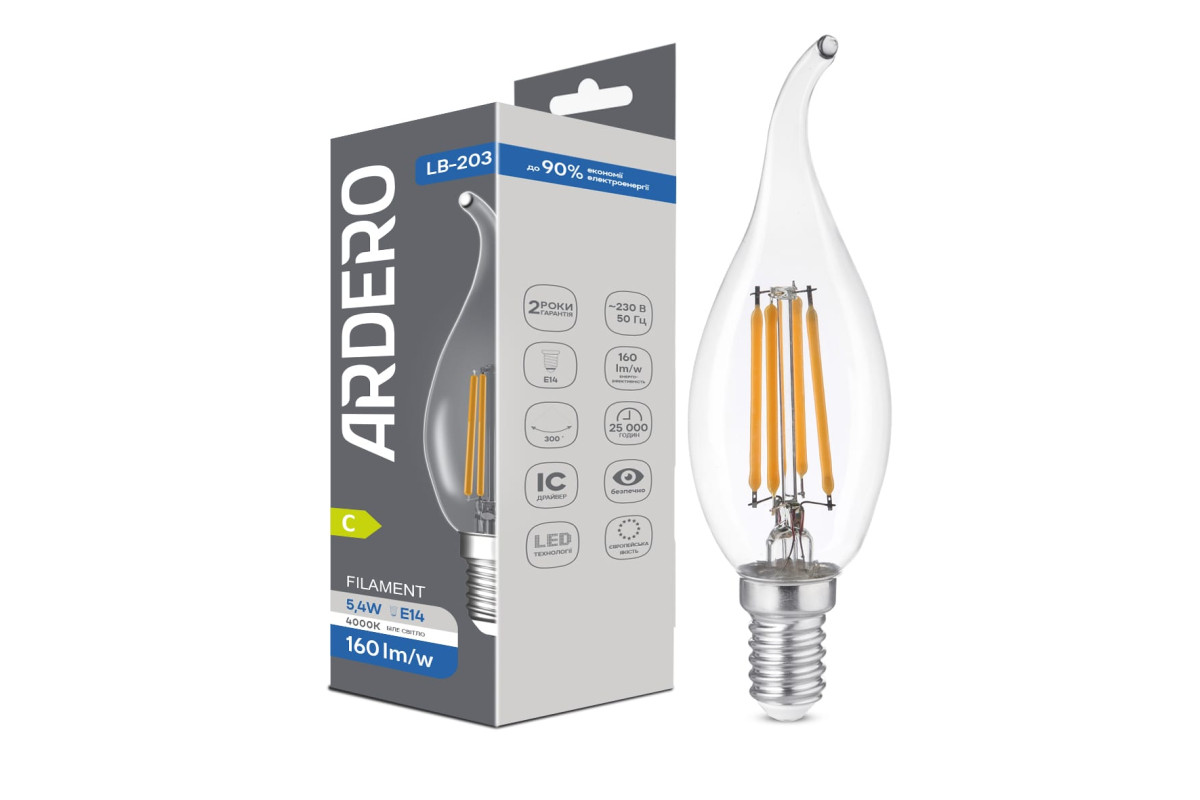 ❓ Хто виробник Світлодіодна лампа Ardero LB-203 5,4Вт E14 4000K?