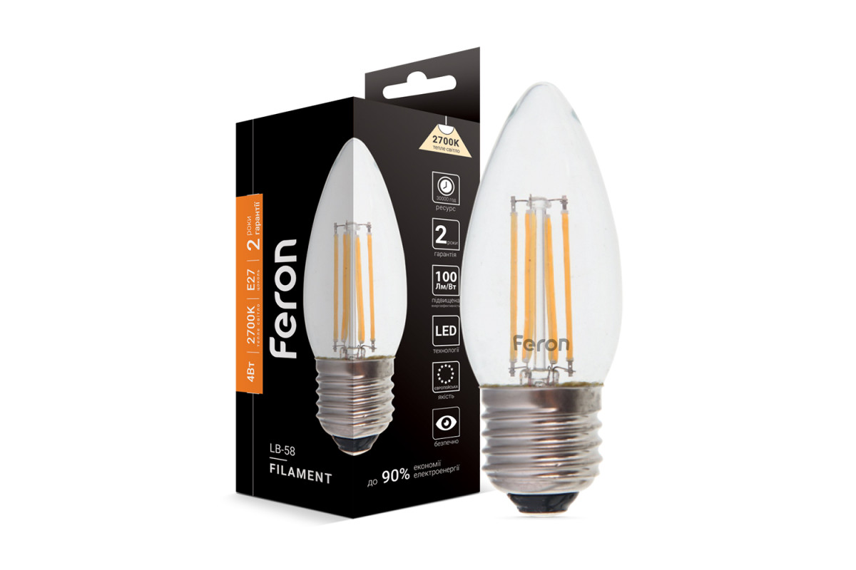 ❓ Як замовити Світлодіодна лампа Feron Filament LB-58 4Вт E27 2700K з доставкою?