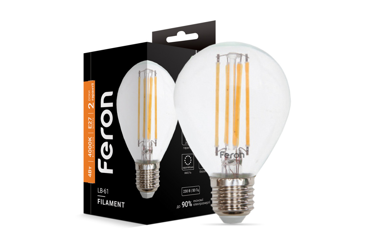 ❓ Як замовити Світлодіодна лампа Feron Filament LB-61 4Вт E27 4000K з доставкою?