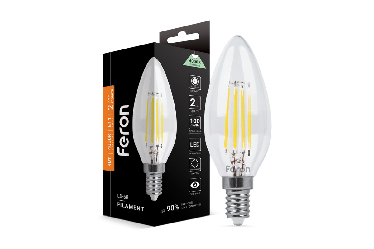 ❓ Як замовити Світлодіодна лампа Feron Filament LB-68 4Вт E14 4000K з доставкою?