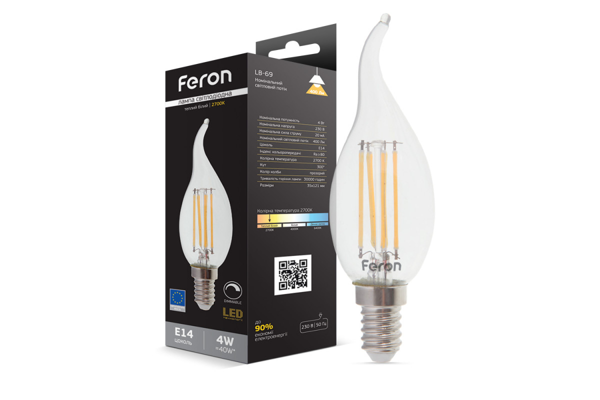 ❓ Хто виробник Світлодіодна лампа Feron Filament LB-69 4Вт E14 2700K свічка на вітрі?