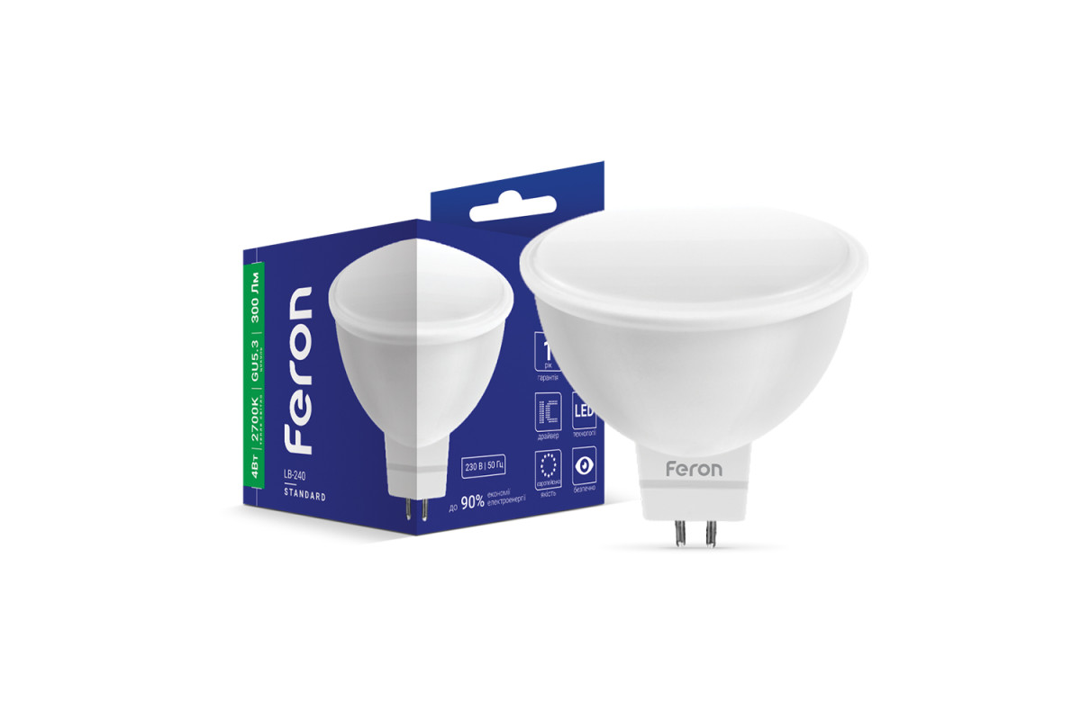 ❓ Хто виробник Світлодіодна лампа Feron LB-240 4Вт G5.3 2700K?