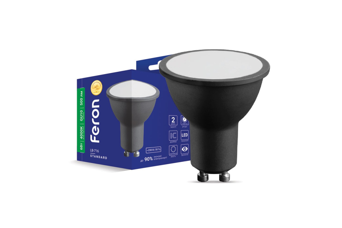 ❓ Хто виробник Світлодіодна лампа Feron LB-716 6Вт GU10 4000K чорний?