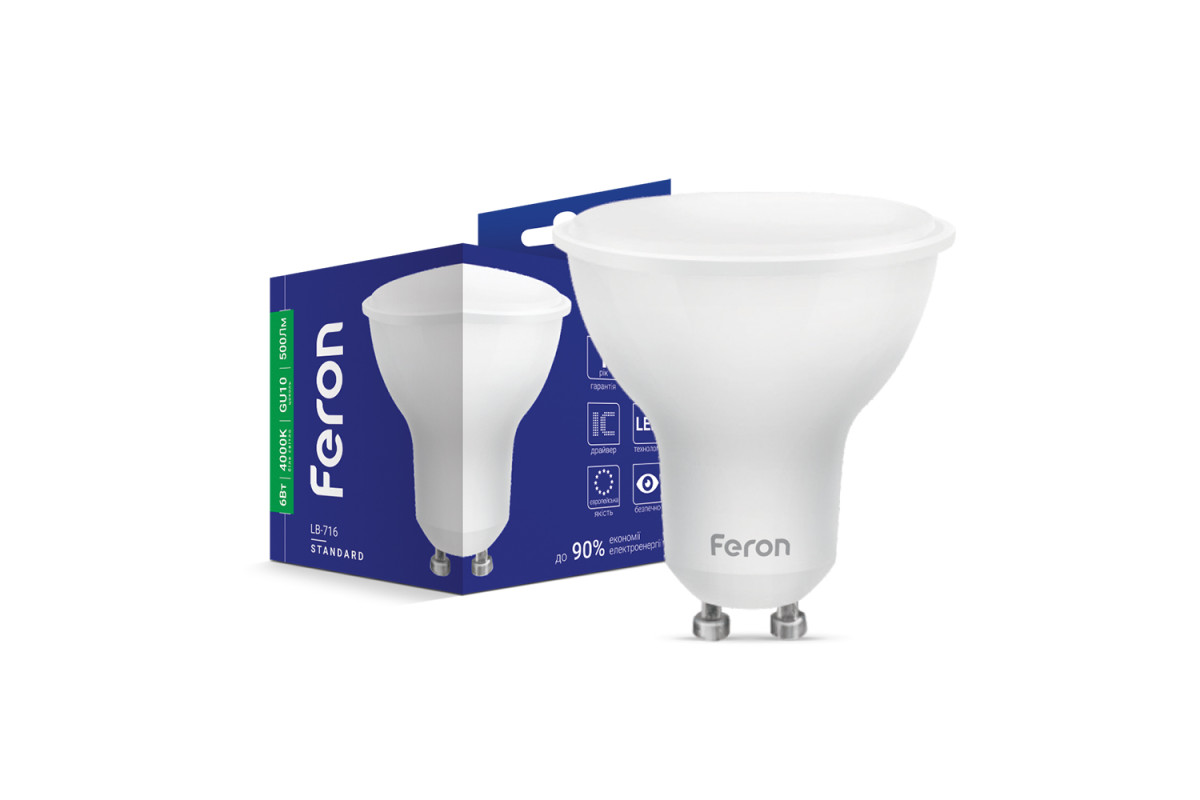 ❓ Хто виробник Світлодіодна лампа Feron LB-716 6Вт GU10 4000K?