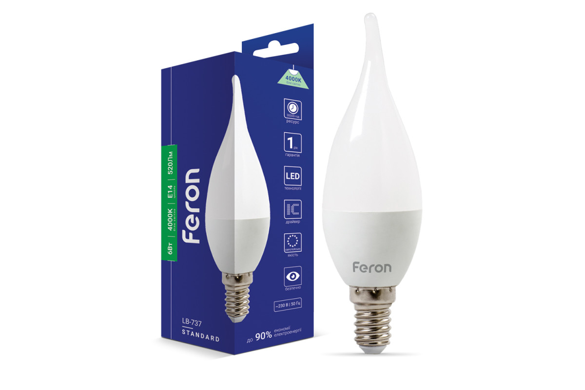❓ Як замовити Світлодіодна лампа Feron LB-737 6Вт E14 4000K свічка на вітрі з доставкою?