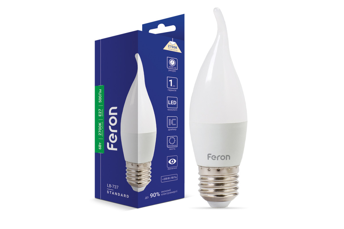 ❓ Хто виробник Світлодіодна лампа Feron LB-737 6Вт E27 2700K свічка на вітрі?