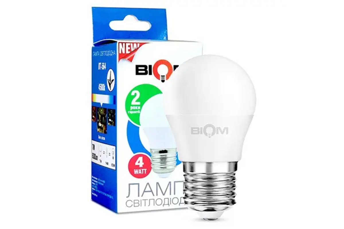 ❓ Як замовити Світлодіодна лампа G45 4W E27 4500K 175-260V матова ВТ-544 Biom з доставкою?