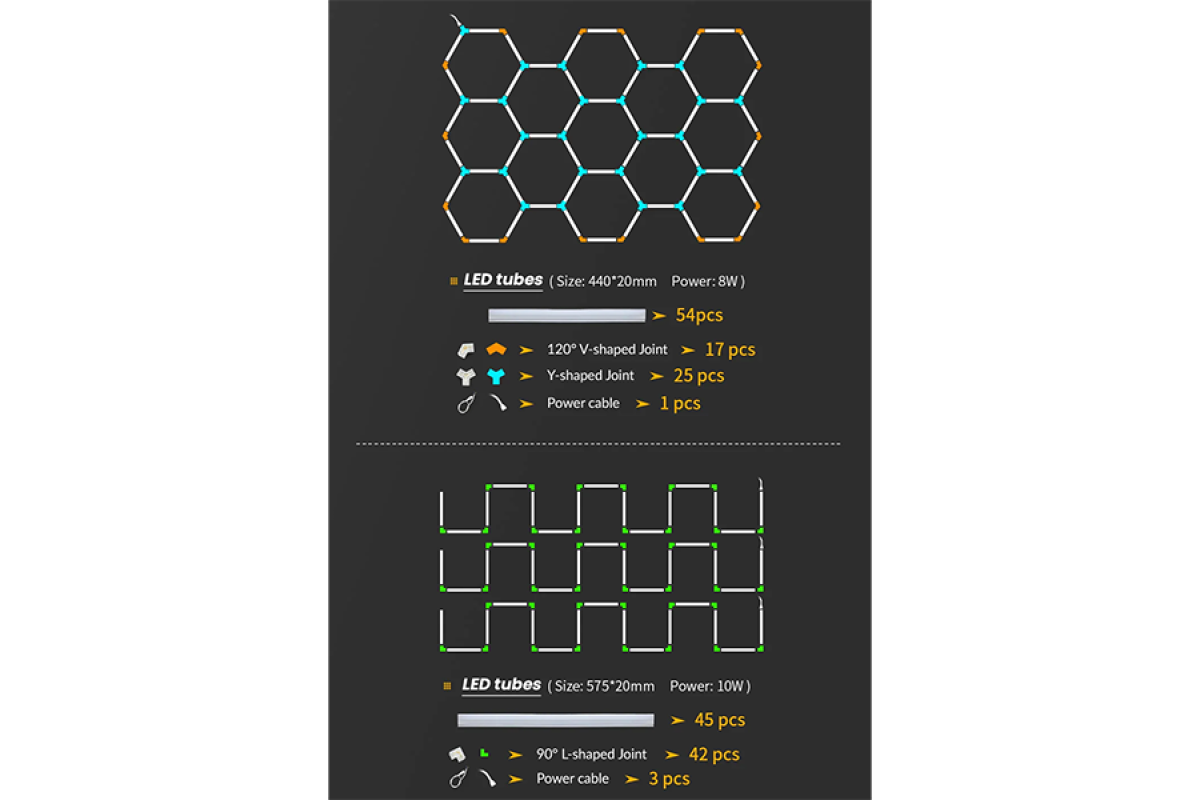 Завдяки модульній конструкції лампи можна з’єднувати між собою, утворюючи цілі системи освітлення будь-якої довжини або форми — від лінійного підсвічування до дизайнерських геометричних композицій.