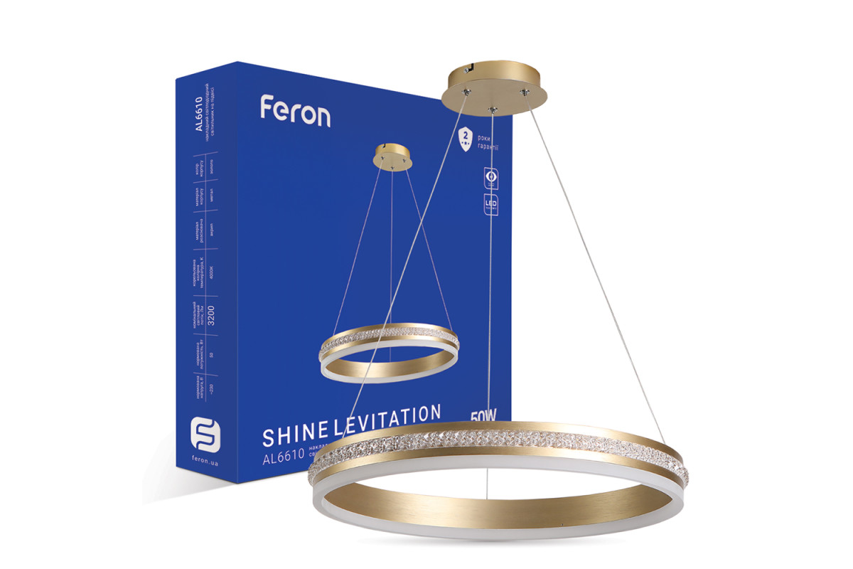 ❓ Хто виробник Світлодіодна люстра Feron AL6610 SHINE LEVITATION 50Вт 4000K золото?