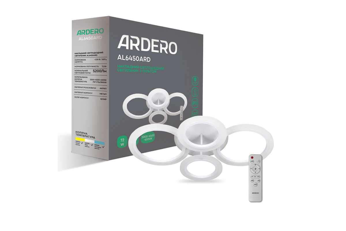 ❓ Як замовити Світлодіодна накладна люстра Ardero AL6450ARD SOFT R 72Вт білий з доставкою?