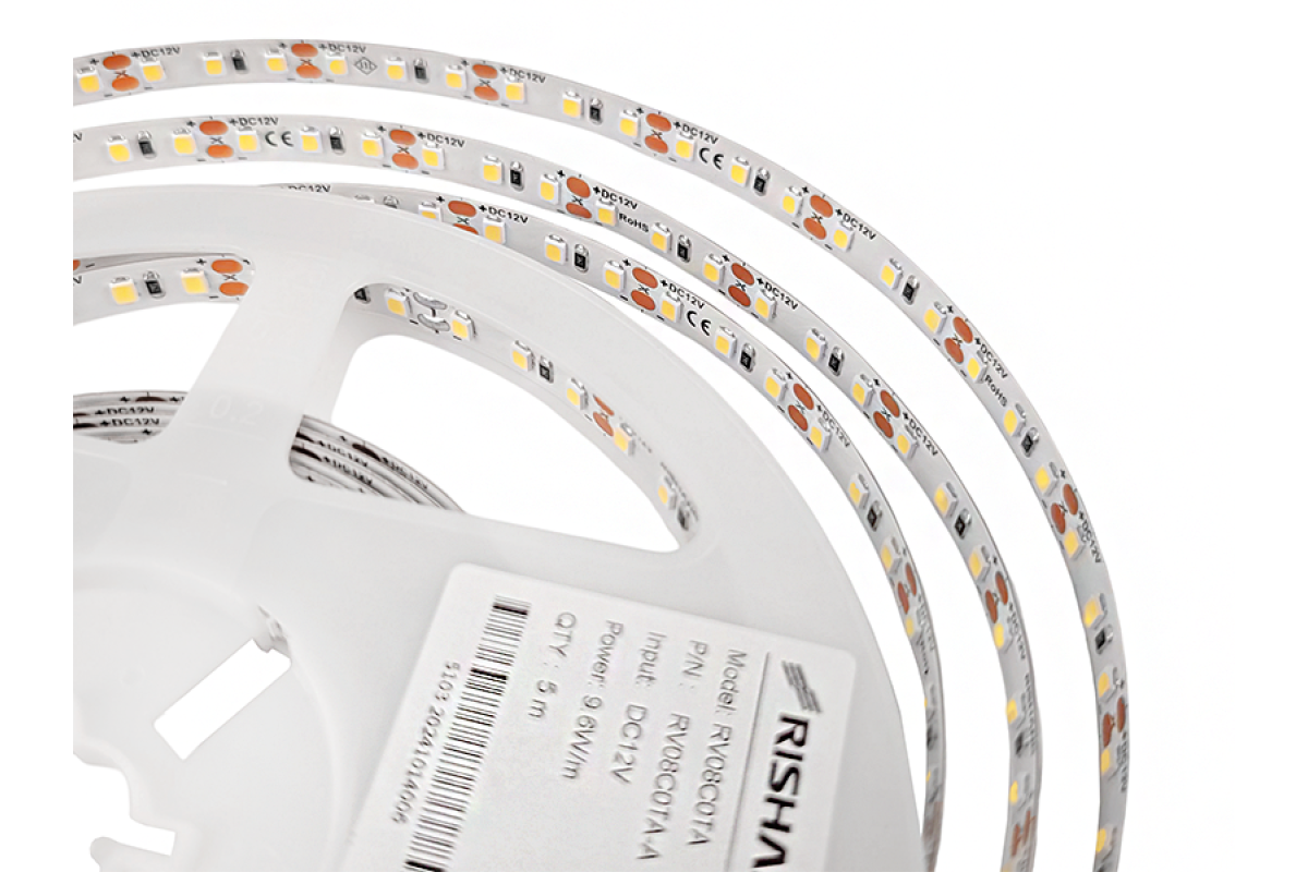 Світлодіодна стрічка 2835-120led-8mm-12V 9,6W, IP20 холодно білий RISHANG 3 роки гарантії