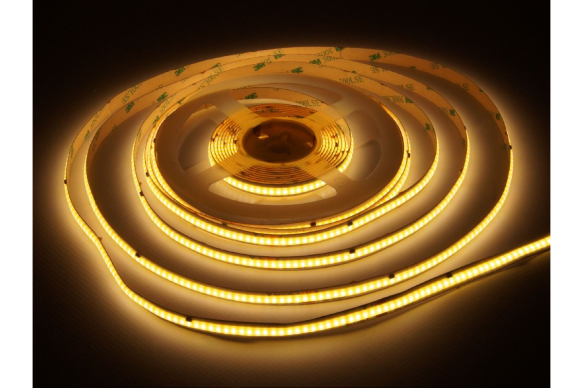 Світлодіодна стрічка COB-296led-8mm-220V IP20 10W/m 90lm/w подвійна плата 3000К RA80 2 роки гарантії (5м бухта) LEDUA