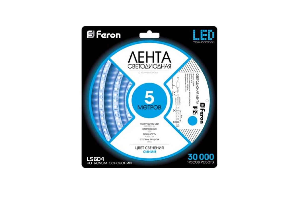 ❓ Хто виробник Світлодіодна стрічка Feron LS604 12В 4.8Вт/м синій (5 м в бабіні)?
