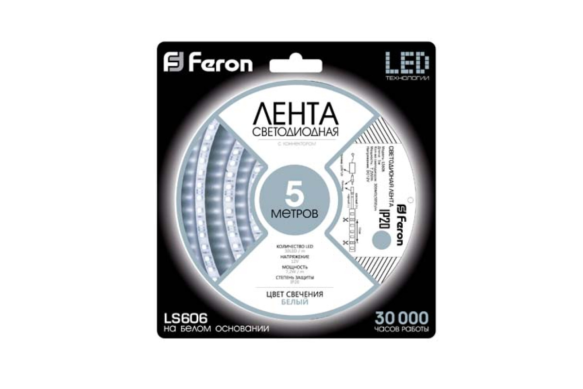 ❓ Хто виробник Світлодіодна стрічка Feron LS606 12В 7.2Вт/м білий (5 м в бабіні)?