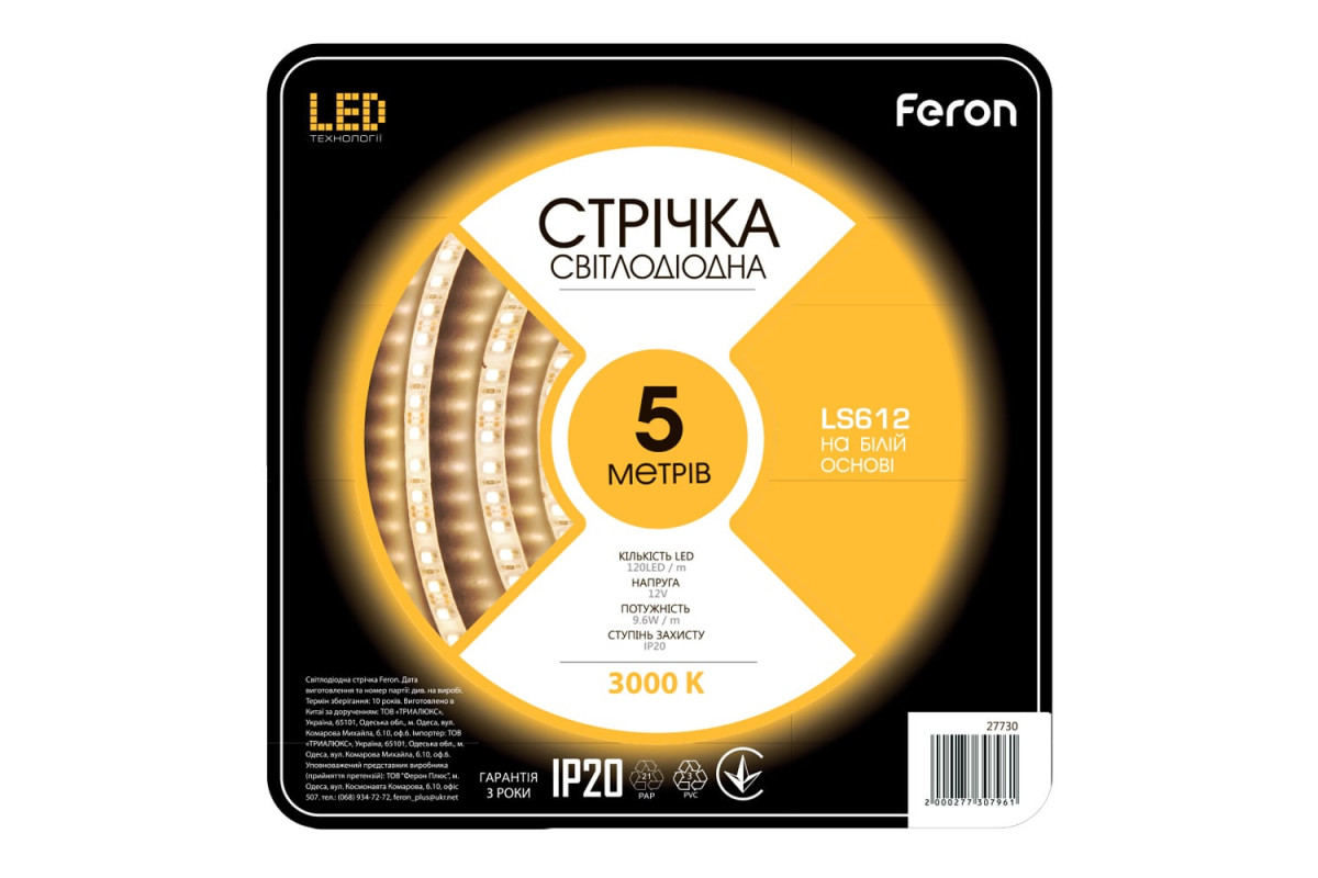 Світлодіодна стрічка Feron LS612 12В 9.6Вт/м теплий білий (5 м в бабіні)