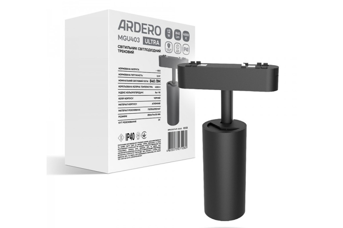 Світлодіодний магнітний трековий світильник 12Вт 4000K 24° чорний MGU403 ULTRA Feron
