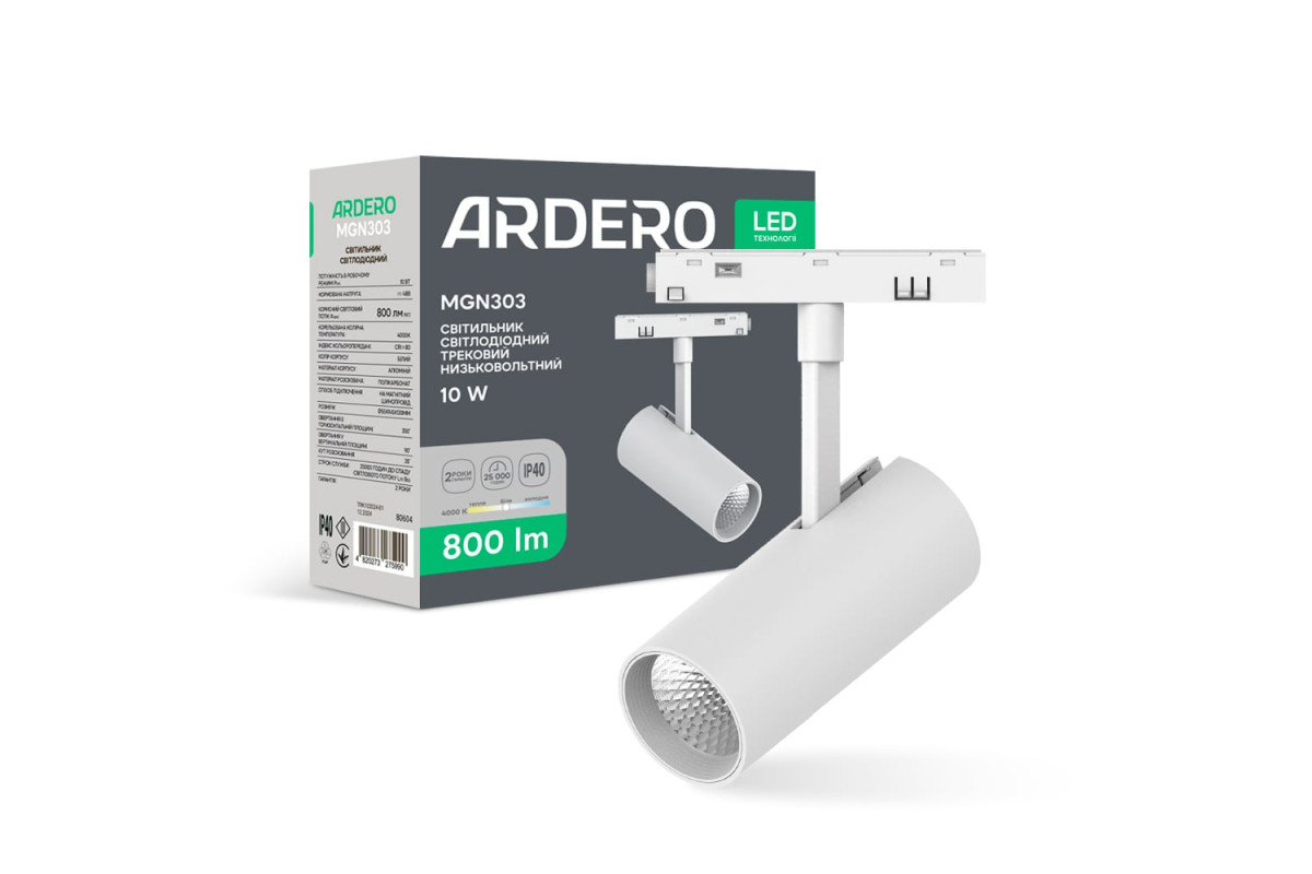 ❓ Яка ціна на Світлодіодний магнітний трековий світильник Ardero MGN303 10Вт 4000К білий у 2026 році?