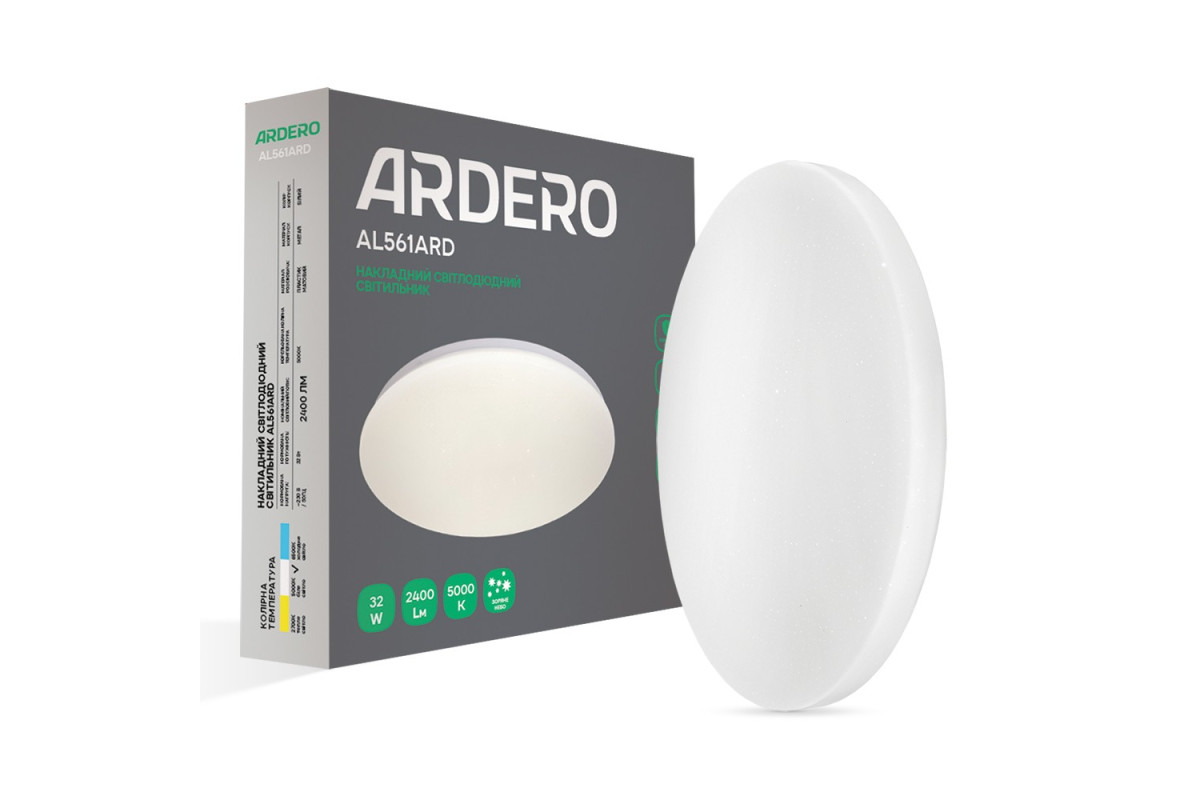 ❓ Яка ціна на Світлодіодний накладний світильник Ardero AL561ARD 32Вт 5000K зоряне небо у 2026 році?